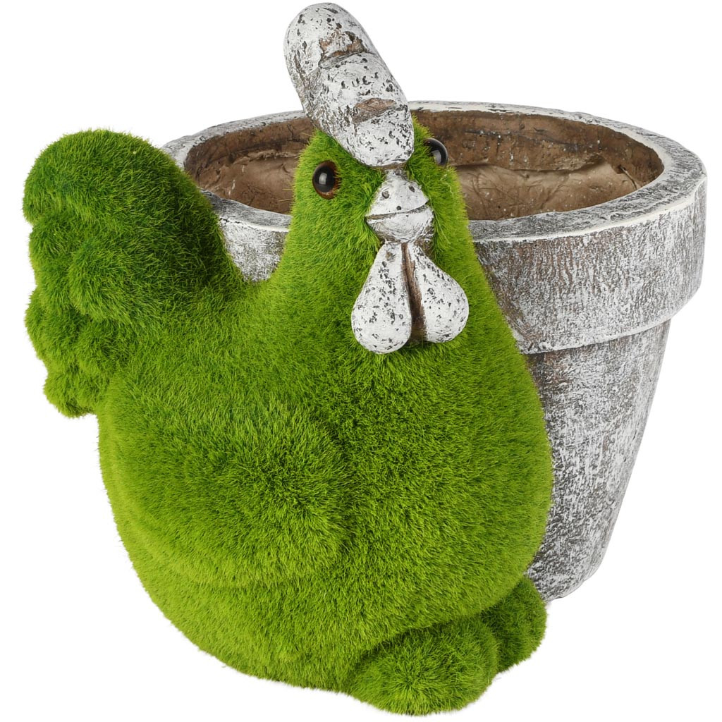 Geef je interieur of tuin een vrolijke en speelse touch met deze bloempot met kip. De groene en grijze tinten gecombineerd met het kipmotief maken dit een charmant en decoratief item, perfect voor lente- en zomerse sferen.
