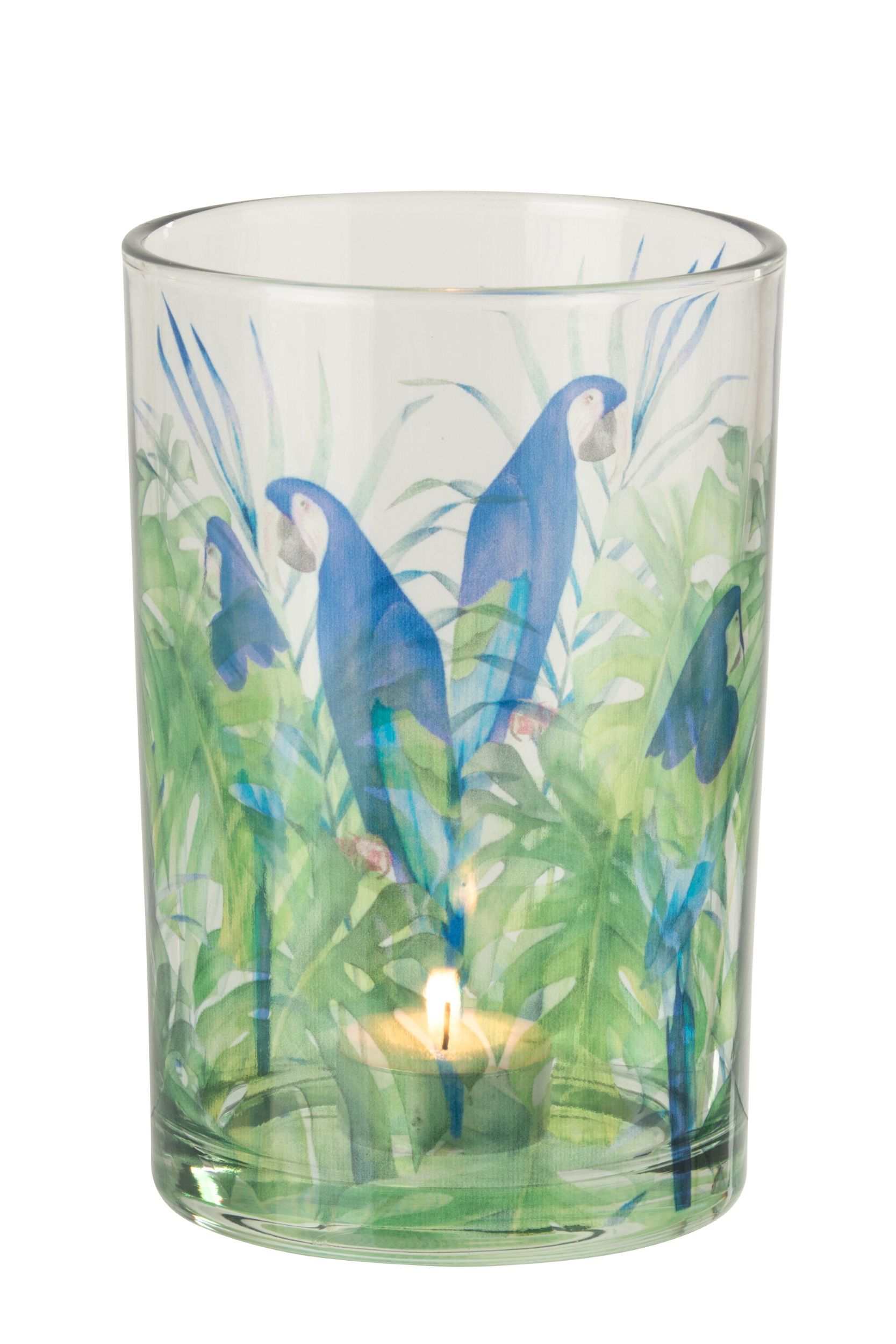 Prachtige theelichthouder / windlicht in helderglas, bedrukt met kleurrijke papegaaien in geel, groen en blauw πΏππ. Deze vrolijke print geeft je interieur meteen een fris lentegevoel en een exotische touch π΄β¨.