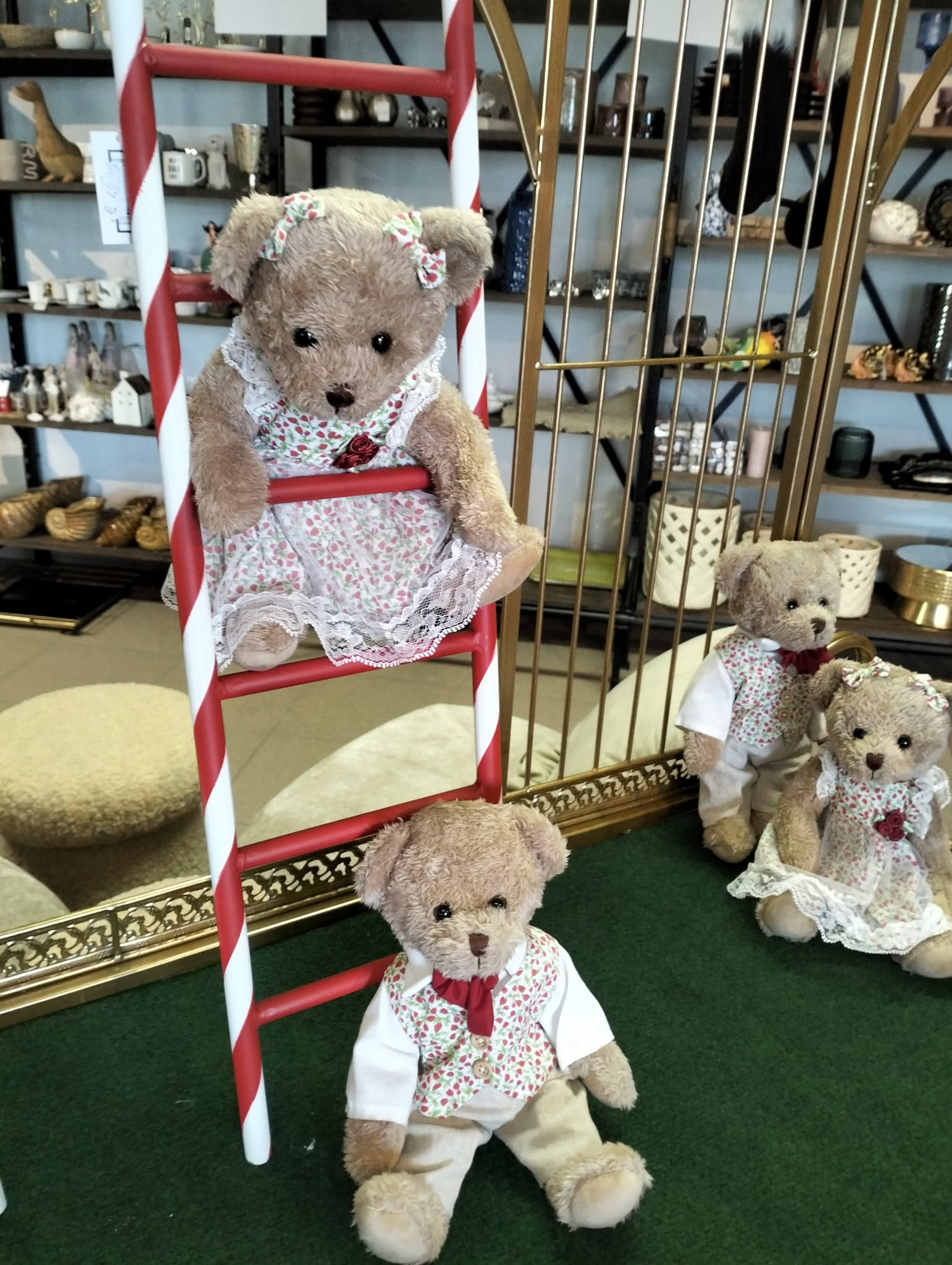 Vrouwtjesbeer: rood bloemetjeskleed, strikjes in de vacht