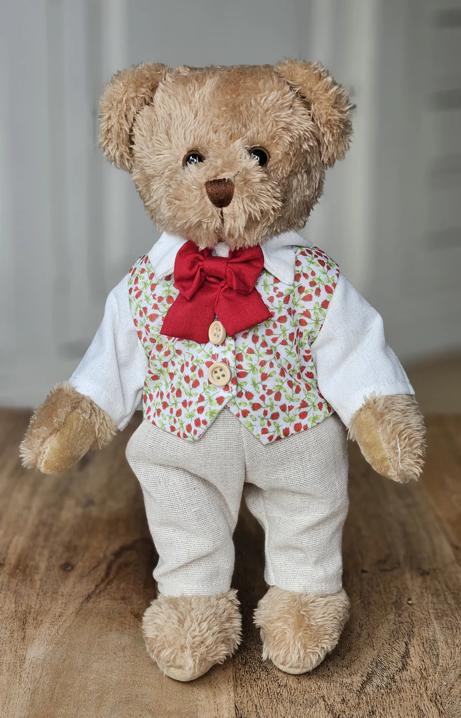Mannetjesbeer: strikje en rood bloemetjesjasje
