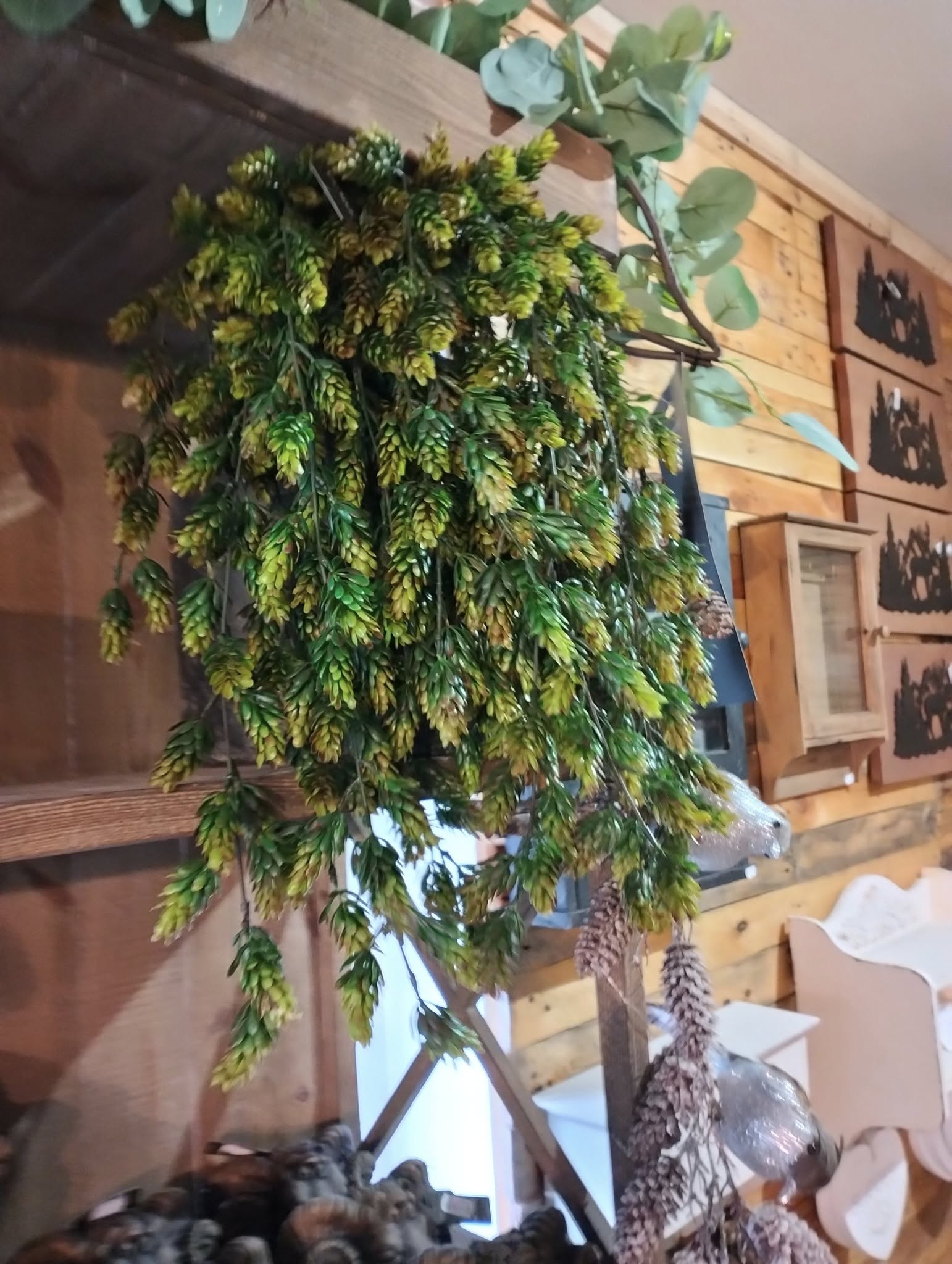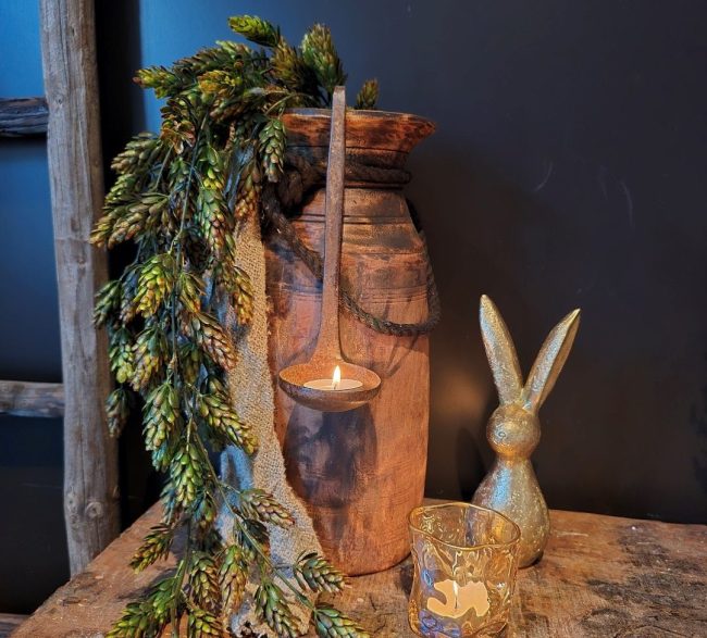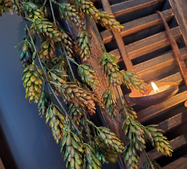 De Humulus Brown Hop-hanger van Brynxz is een sfeervolle kunstplant met een natuurlijke, herfstachtige uitstraling. De warmbruine hopbellen en de realistische takstructuur maken dit decoratieve stuk perfect voor hangend gebruik in potten, schalen of over de rand van een kast of tafel. Een stijlvol accent dat rust en karakter toevoegt aan je interieur.