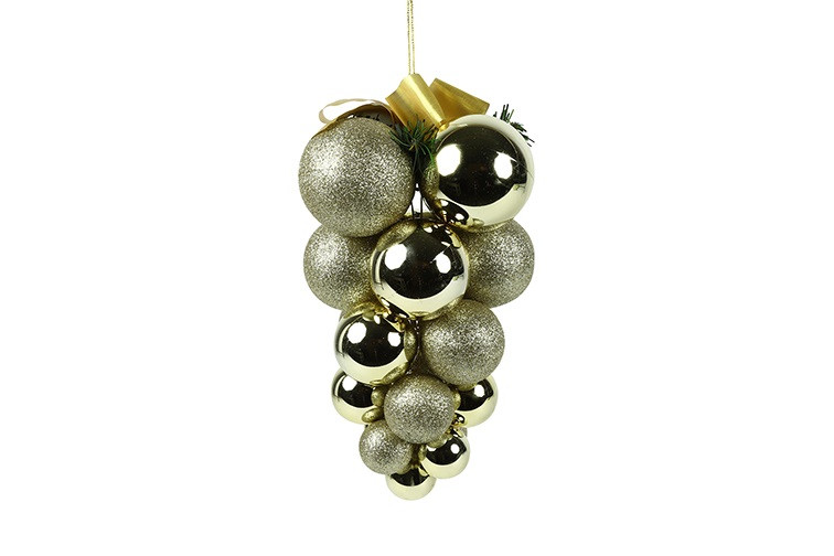 Breng een vleugje luxe en elegantie in jouw kerstcollectie met de Kersthanger Vinella. Deze hanger, samengesteld uit kerstballen in de kleur van champagne, is een echte blikvanger en voegt een betoverende sfeer toe aan je interieur. Dankzij het stijlvolle en trendy design sluit de hanger perfect aan bij uiteenlopende kerstthema’s.