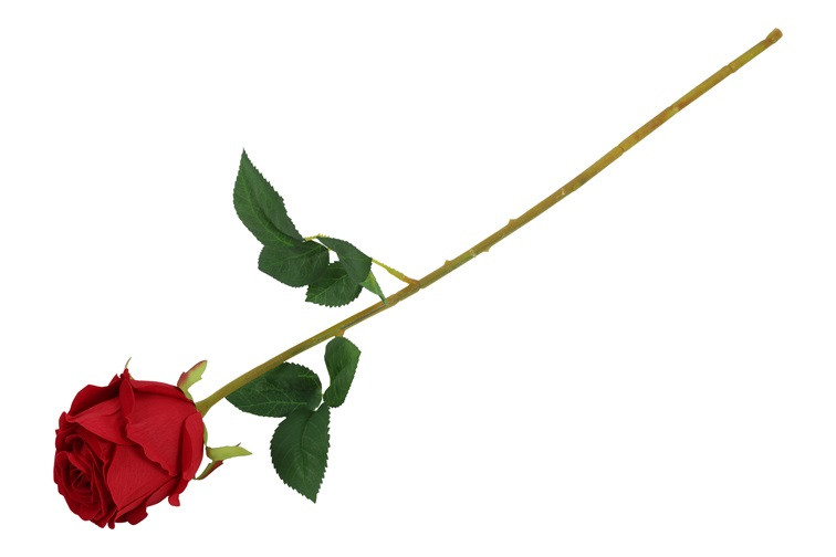De Rosa Compasion kunstroos in diep rood straalt klassieke elegantie en romantiek uit. De verfijnde bloemknoppen en rijke kleur geven deze roos een tijdloze, natuurlijke uitstraling. Vervaardigd uit hoogwaardig kunststof blijft de bloem langdurig mooi zonder onderhoud. Perfect als stijlvolle blikvanger in een vaas of als subtiele toevoeging aan een bloemstuk – een elegante keuze voor elk interieur.