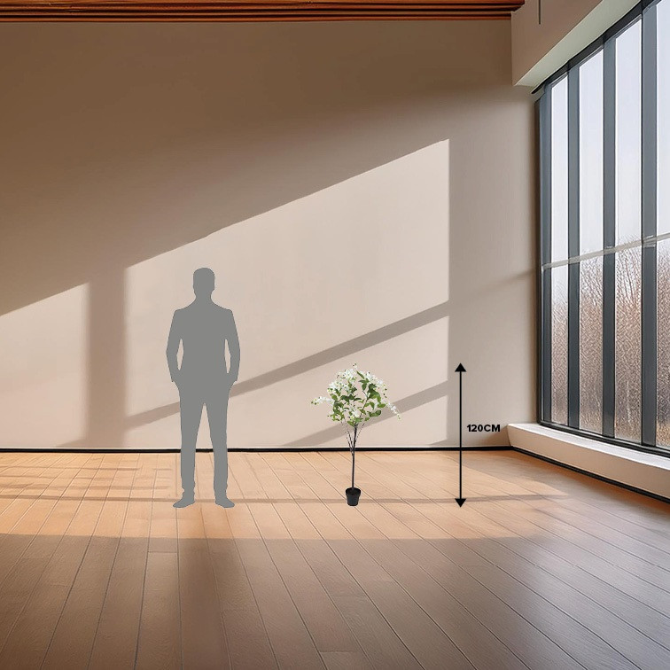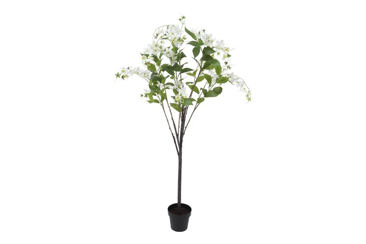 De countryfield Kunstplant op stam Wisteria in de kleur wit is een prachtige en sfeervolle decoratie voor je interieur. Met afmetingen van L180 x B60 x H120 cm brengt deze kunstplant een mooie natuurlijke uitstraling zonder dat je je zorgen hoeft te maken over onderhoud. De combinatie van kunststof en zijden bloemen zorgt voor een realistische en elegante uitstraling. Het is een perfecte keuze om een frisse, groene sfeer toe te voegen aan je huis of kantoor.