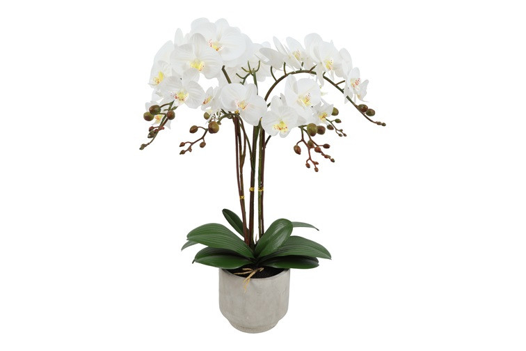 Deze kunstorchidee Phalaenopsis is de perfecte combinatie van stijl en gemak – een stijlvolle eyecatcher die het hele jaar door zijn schoonheid behoudt.