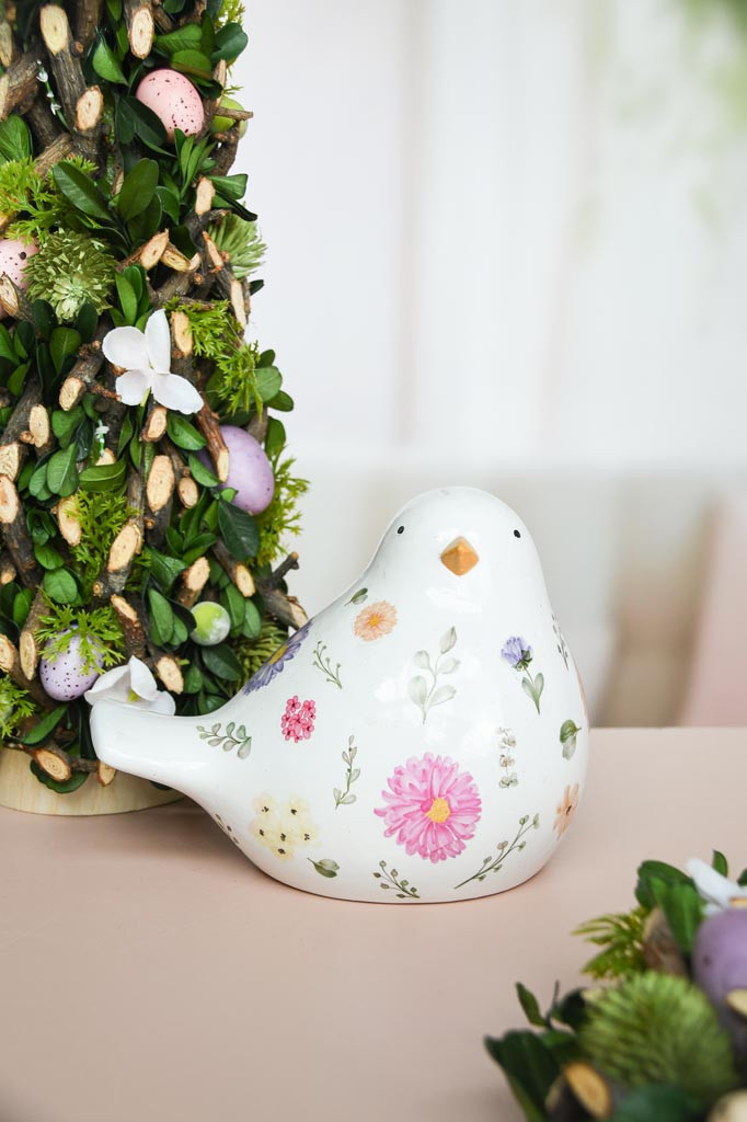 Breng een verfijnde en zachte uitstraling in je interieur met de Vogel “Flower Puff”. Dit elegante witte beeldje is afgewerkt met een subtiel bloemenmotief en straalt rust en charme uit. De ronde vormen en fijne details zorgen voor een tijdloze en decoratieve look.