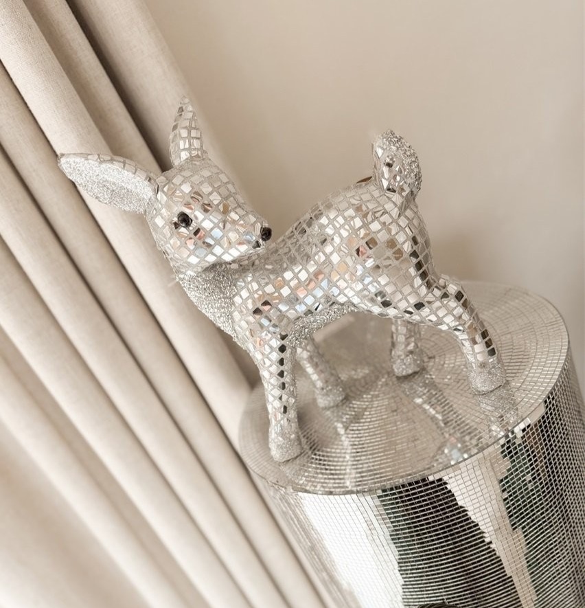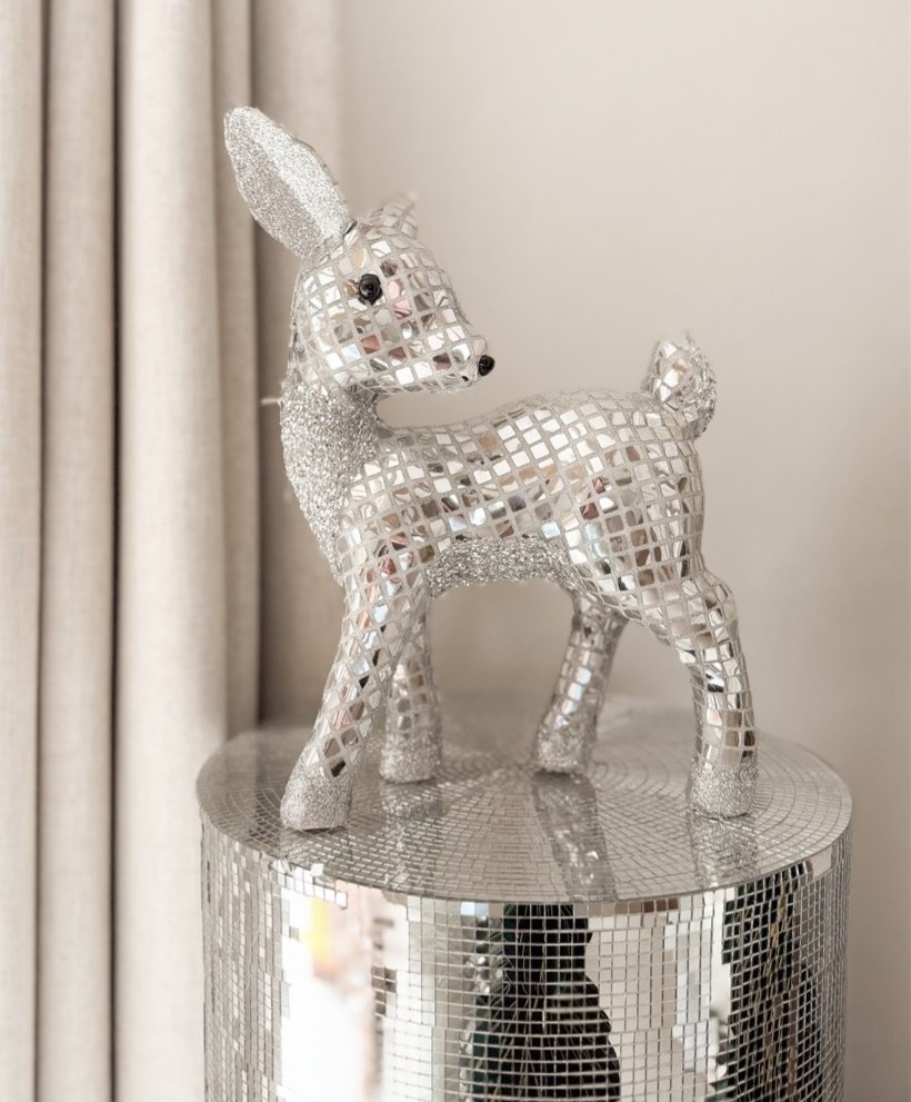 Geef je interieur een feestelijke en luxueuze uitstraling met dit decoratieve kunststof hert, volledig afgewerkt met kleine blinkende glittertegeltjes. Het fonkelende mozaïek-effect vangt prachtig het licht en maakt van dit hert een echte eyecatcher, ideaal voor tijdens de feestdagen of als stijlvol accent het hele jaar door.