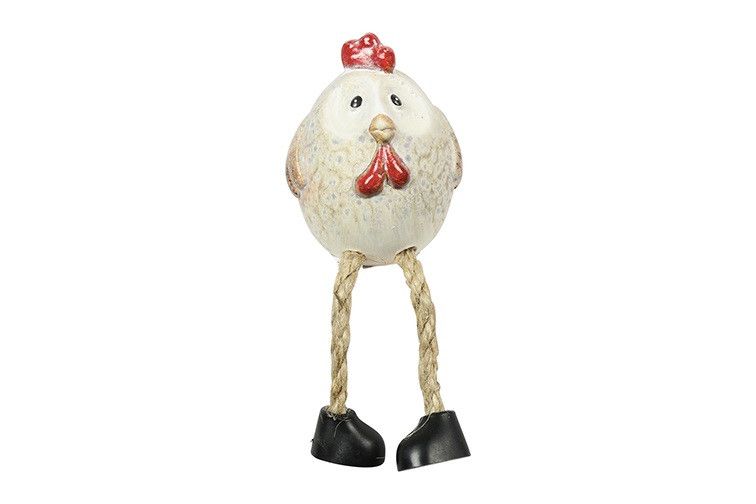 De Kip Pru – met bungelbenen is een schattig, rond keramiekfiguurtje met een neutrale beige kleur en zachte, afgeronde lijnen. Het figuurtje heeft een rode kam op het hoofd en rode lelletjes, waardoor het een speels en charmant karakter krijgt.