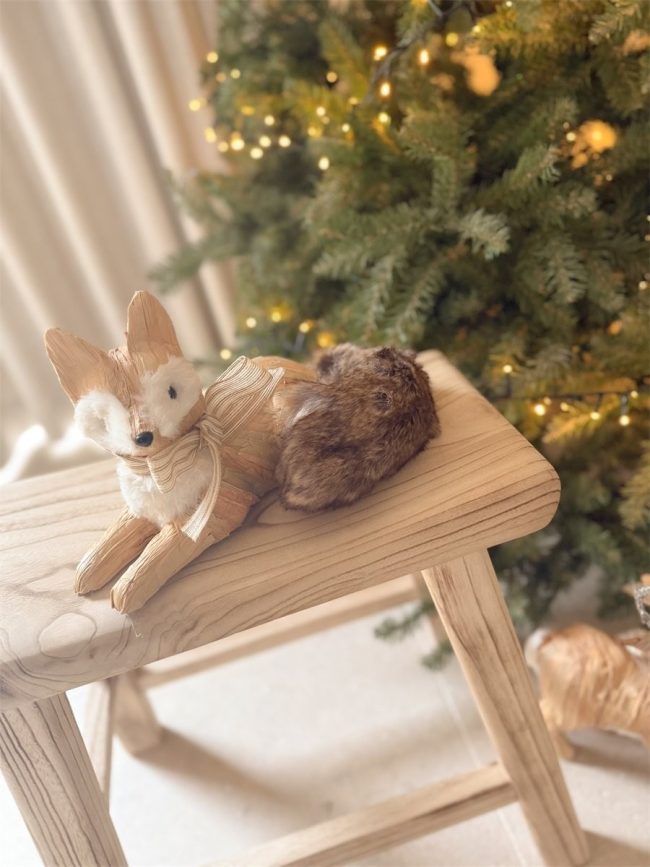 Wat een prachtige decoratieve vos. Deze vos is bekleed met raffia, wat een natuurlijke en rustieke uitstraling geeft. De afmetingen zijn 30 cm hoog, 19 cm breed en 18 cm diep, waardoor hij een opvallende en stijlvolle decoratie is voor in huis. Het is een mooie toevoeging voor een natuurlijke, herfst- of winterthema en brengt zeker een warme sfeer.