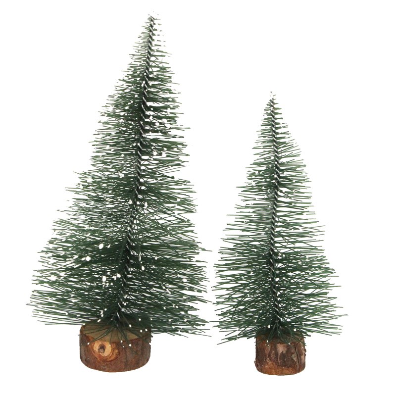 Gisela Graham – decoratieve kerstboom Bristle Tree met Besneeuwde Puntjes – pvc/mdf – groen – h 12/10 cm – Set van 2