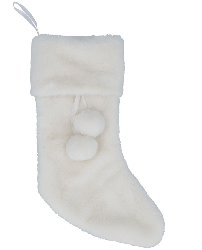 Deze luxe kerstsok van Gisela Graham is uitgevoerd in zachte witte imitatiebont en afgewerkt met speelse pompons. Een stijlvolle en warme accessoire die perfect past in een klassieke of moderne kerstinrichting. Ideaal om te vullen met kleine cadeautjes of gewoon als elegante decoratie.