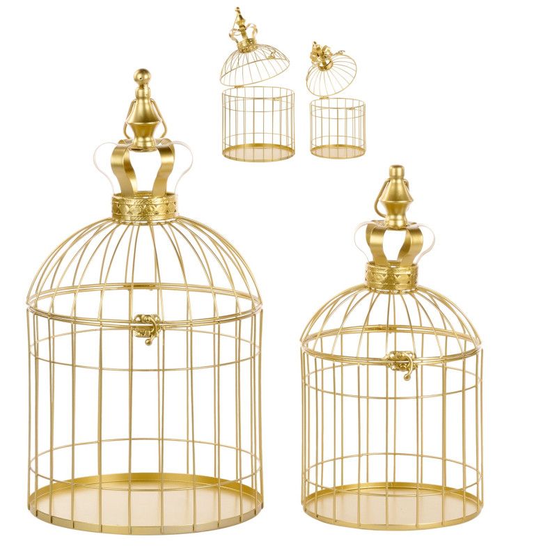 Deze goudkleurige metalen vogelkooien van Goodwill zijn bijzonder stijlvol en elegant, zoals je van het merk gewend bent. De set bestaat uit twee sierlijke vogelkooien, elk afgewerkt met een verfijnde kroon bovenaan die het geheel een extra luxueuze uitstraling geeft.