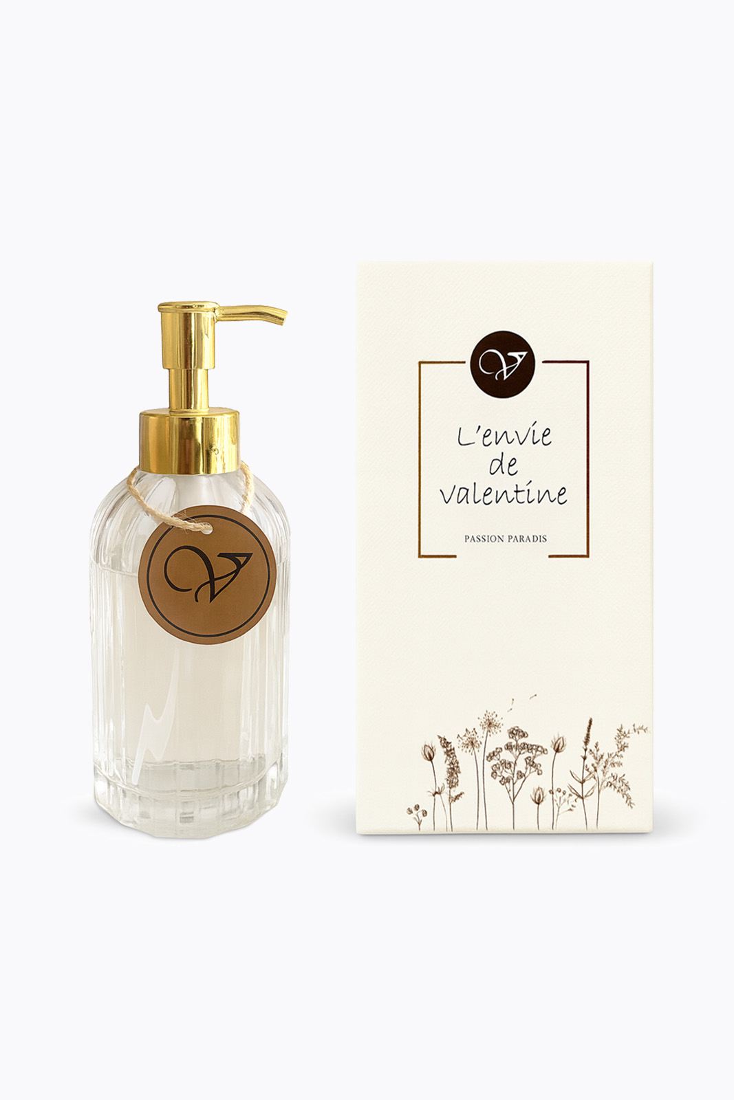 Verwen je handen én je interieur met deze elegante geurende handzeep van L’envie de Valentine. De zeep wordt gepresenteerd in een stijlvolle glazen fles met een verfijnde gouden dispenser, waardoor ze niet alleen functioneel is, maar ook een luxueus decoratief accent vormt in keuken of badkamer.