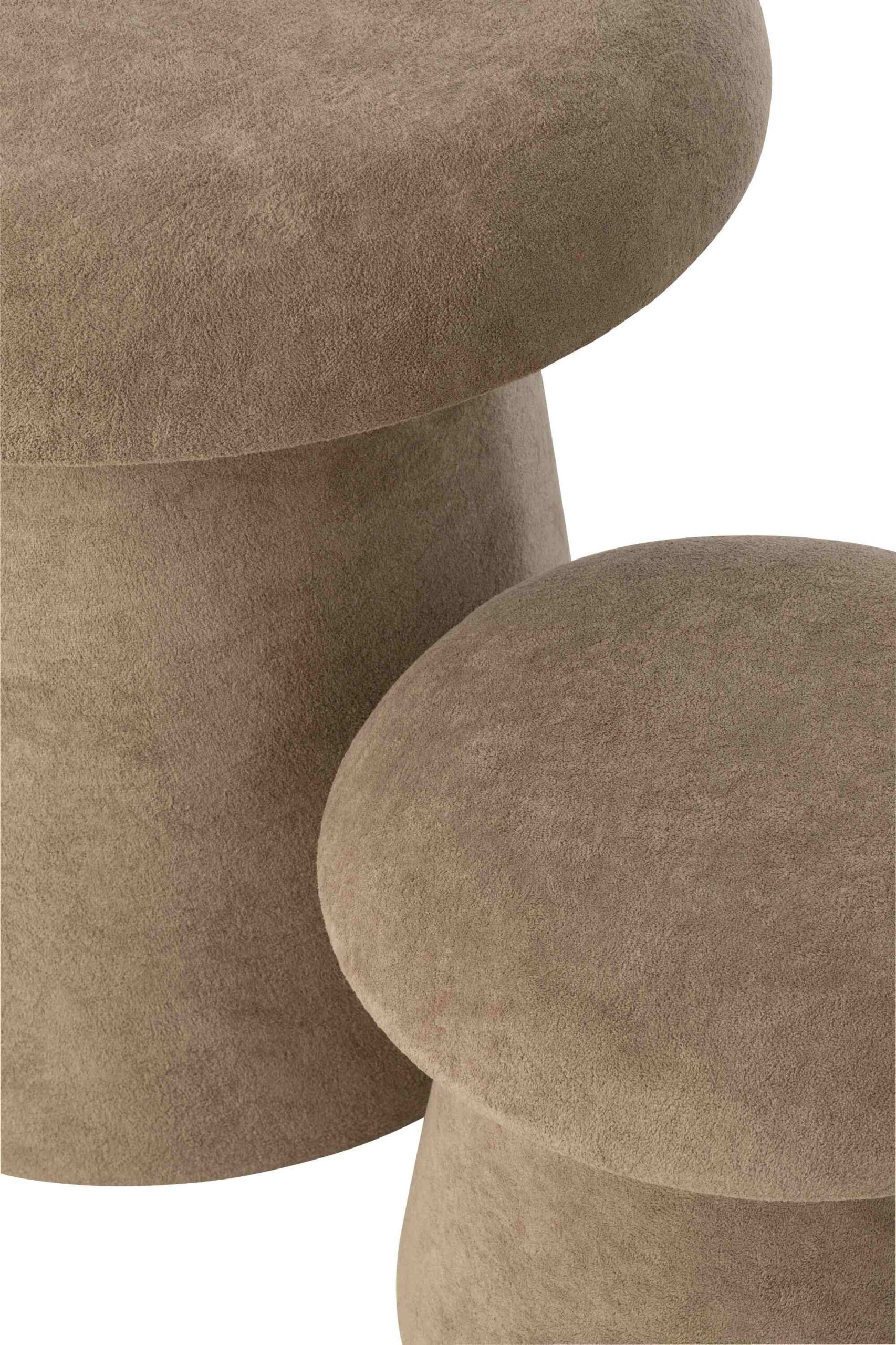 Deze stijlvolle set van 2 krukken/poefs van J-Line combineert comfort met functionaliteit. Ontworpen in een paddenstoelvorm en uitgevoerd in warme beige tinten, zijn ze een echte eyecatcher in elk interieur.