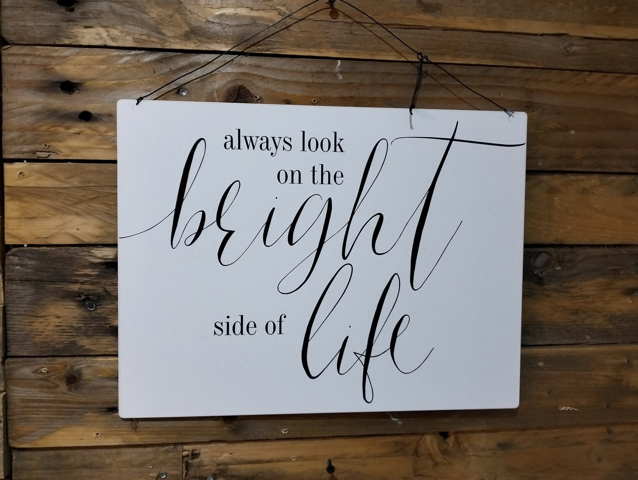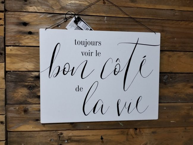 Metalen tekstbord Engels/Frans “Always look on the bright side of life.”……. “Toujours voir le bon côté de la vie ” is een ideaal geschenk voor Vaderdag.