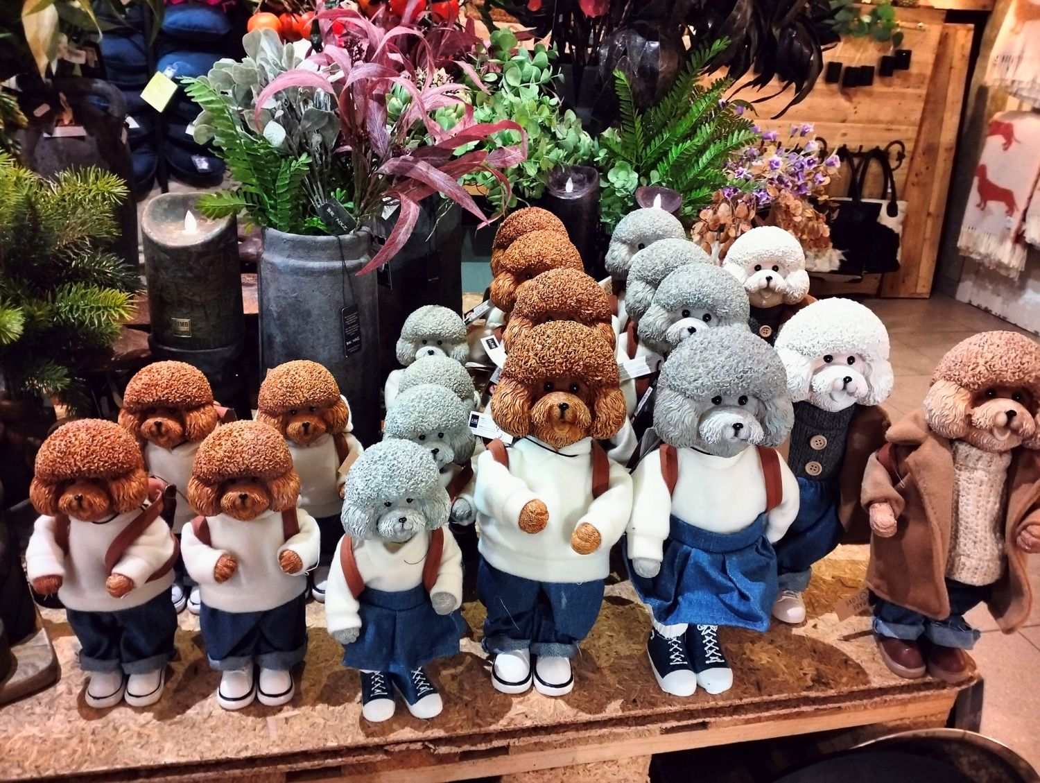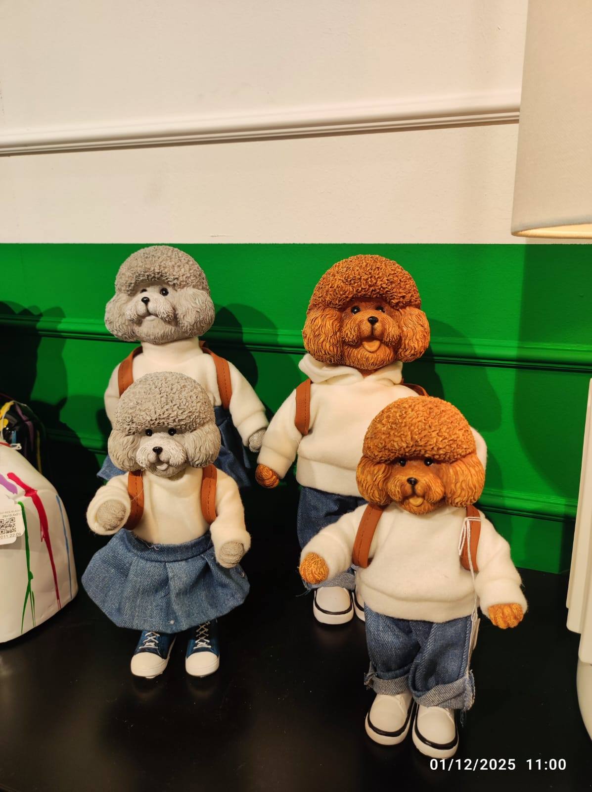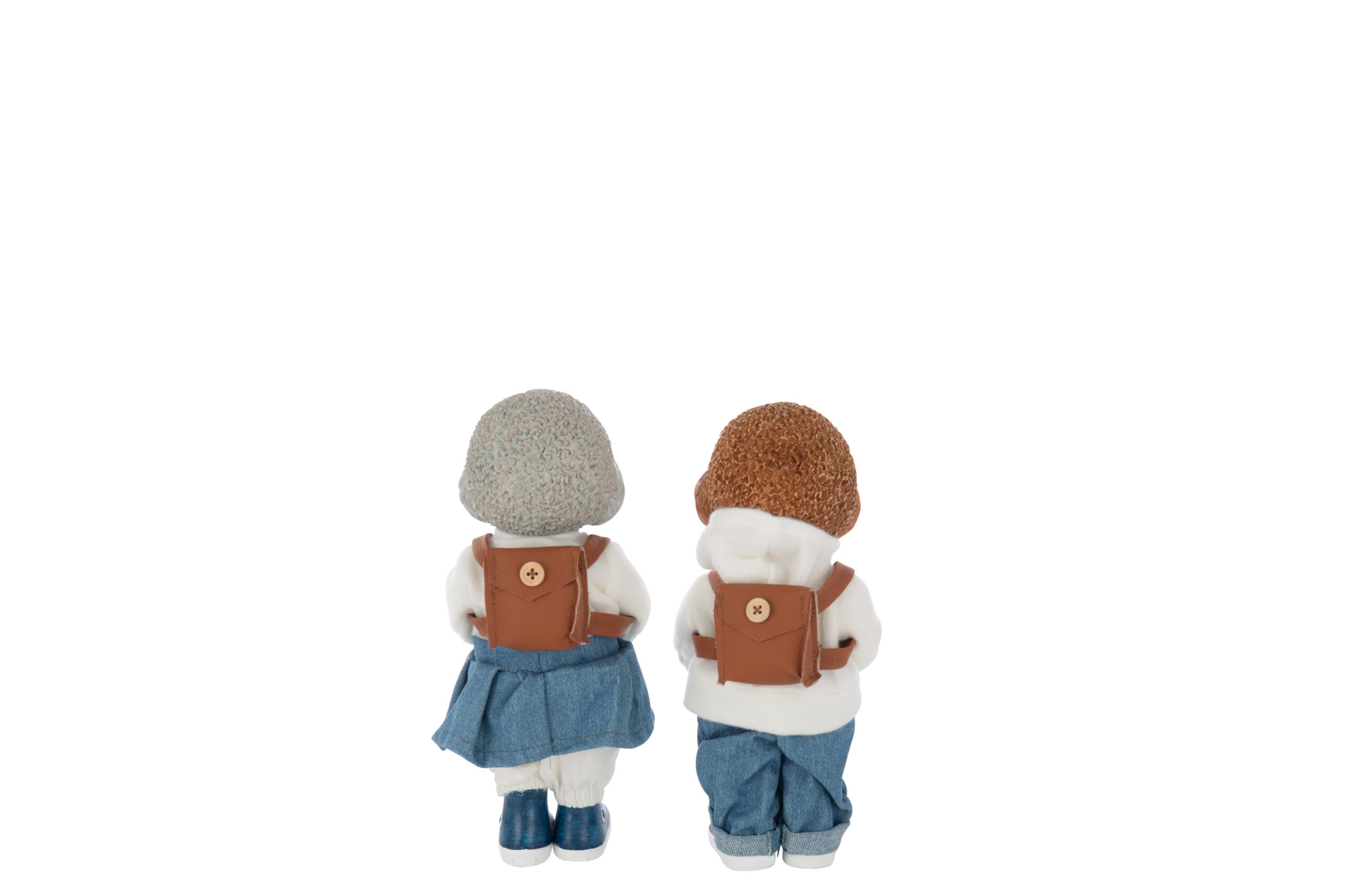 Charmante decoratieve poedelfiguren in kunsthars, verkrijgbaar als jongen of meisje. Elk figuurtje draagt een schattige outfit (kleedje of broek) en een rugzakje op de rug. Dankzij het meerkleurige ontwerp vormen ze een speels en stijlvol accent in elk interieur.