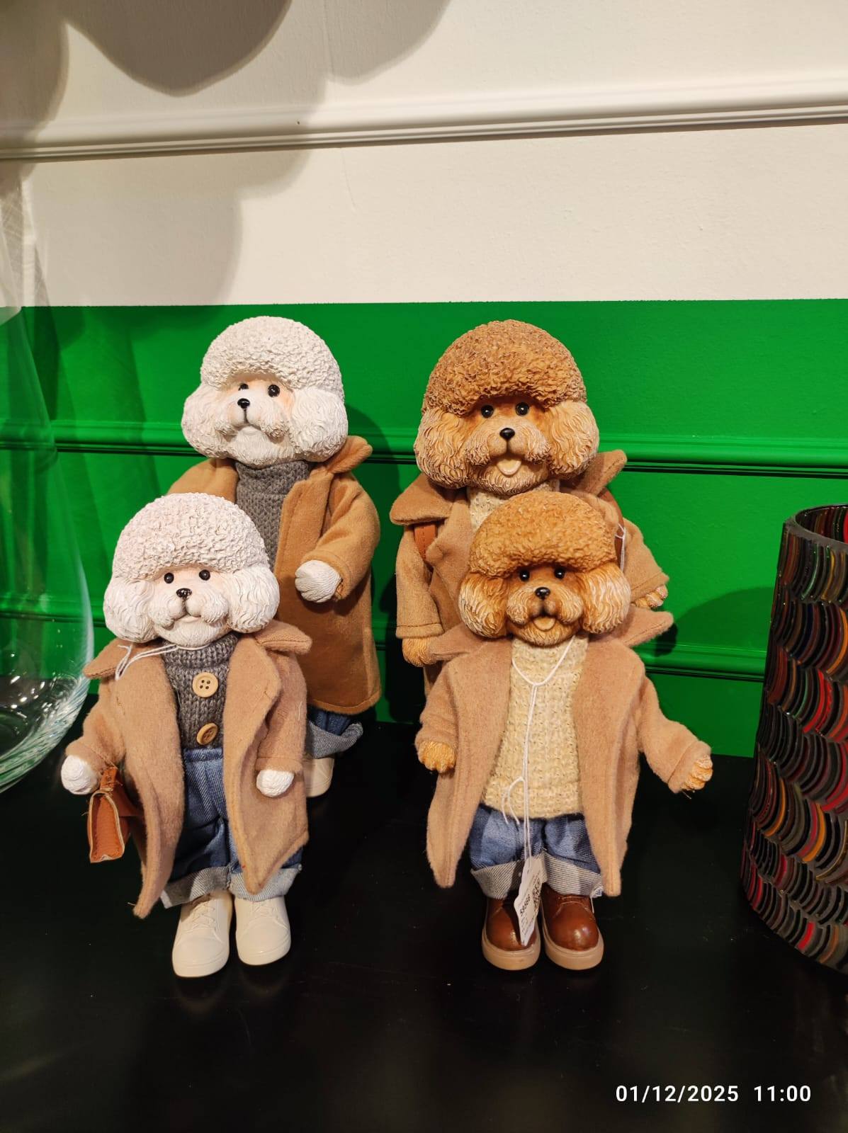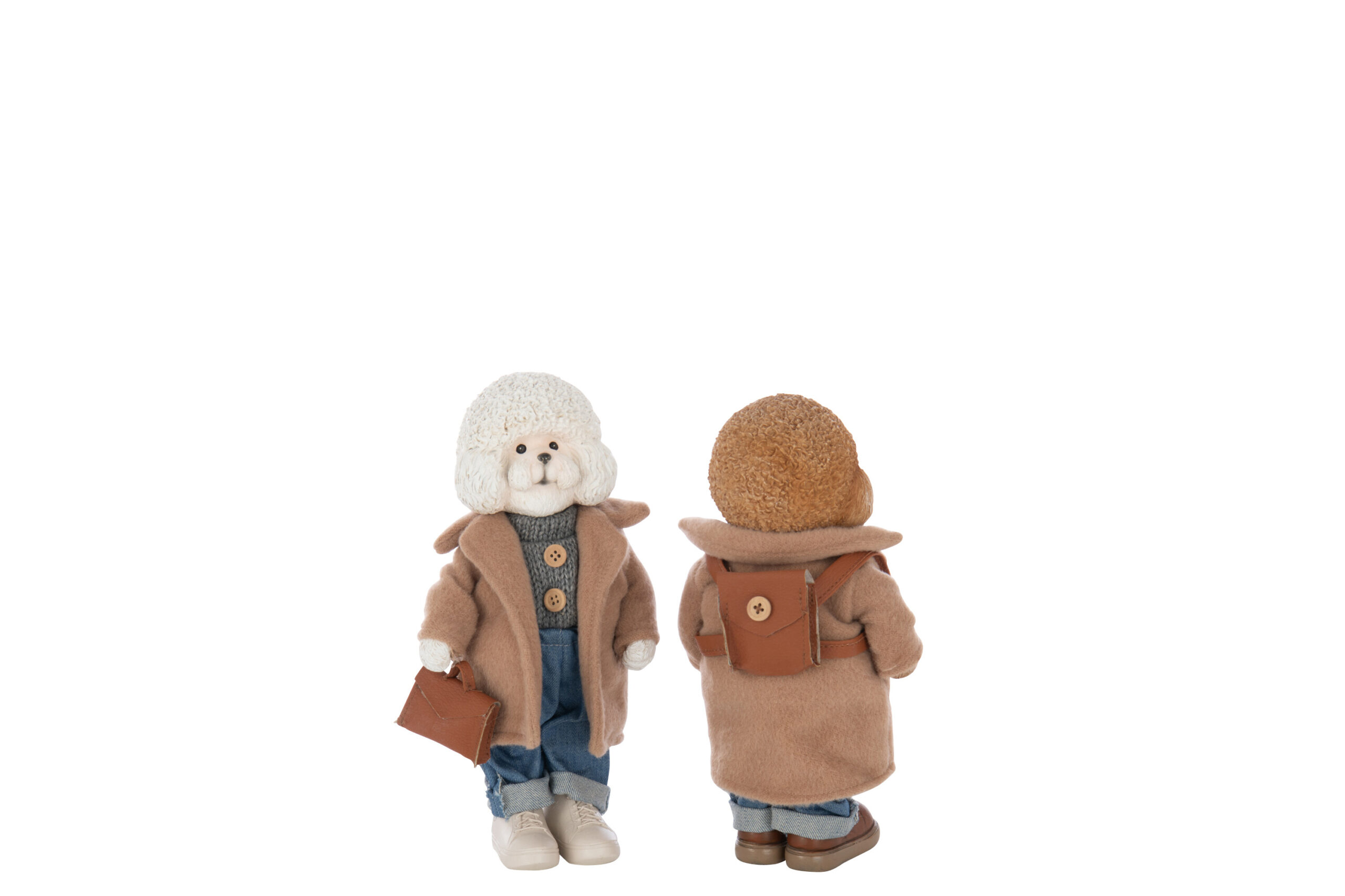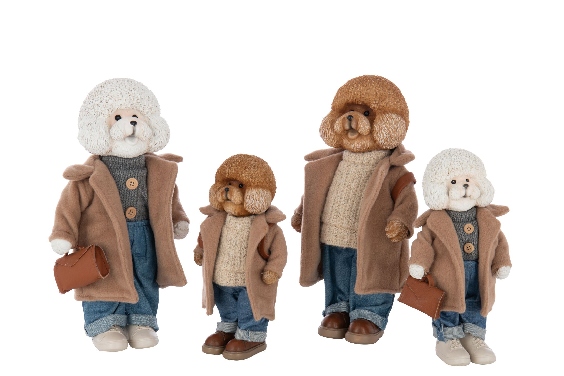 Charmante decoratieve poedelfiguren in kunsthars. Elk figuurtje draagt een winterse outfit met tas of rugzak. Dankzij het speels meerkleurige ontwerp zijn ze een stijlvolle blikvanger in elk interieur.