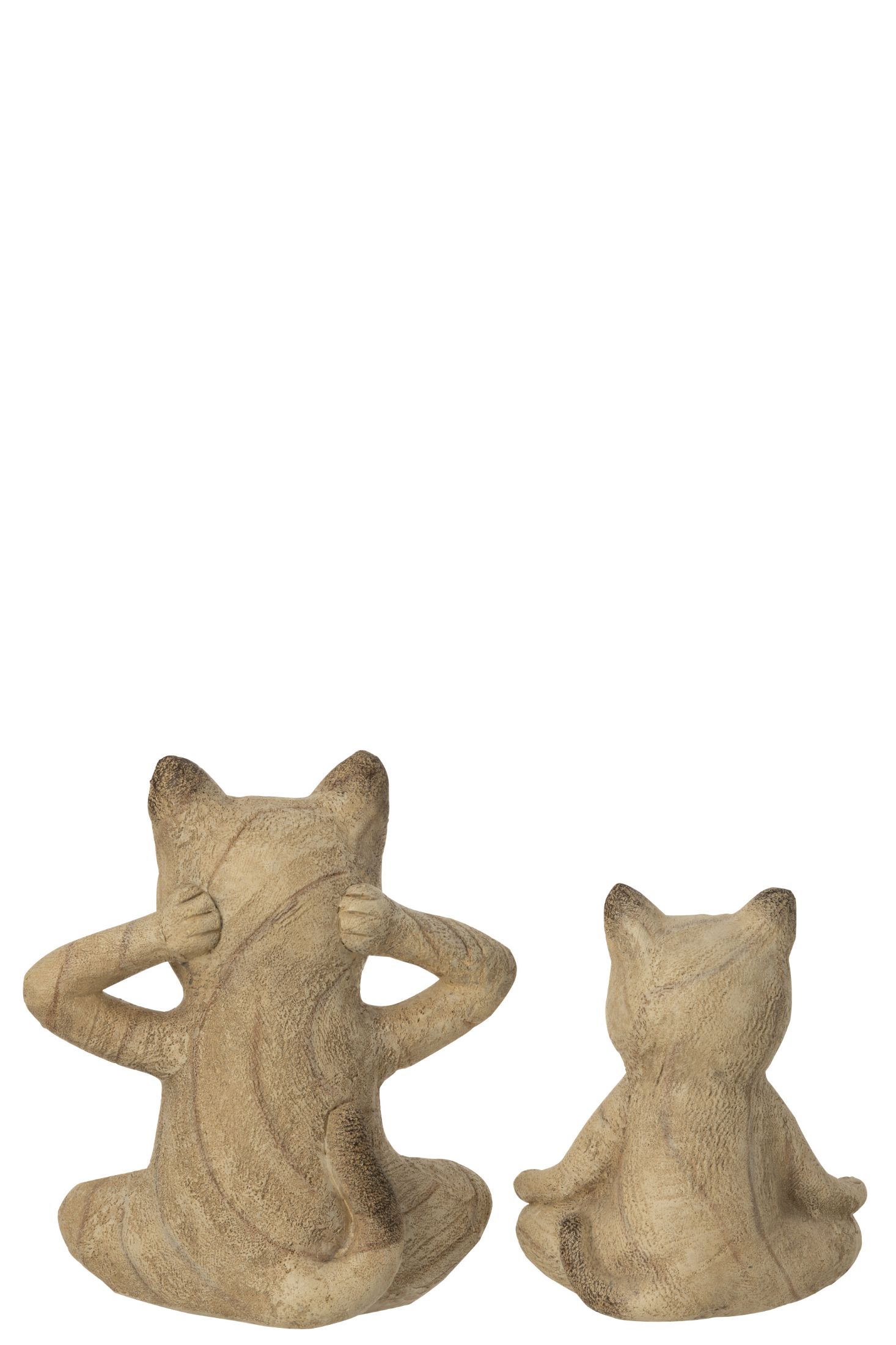 Decoratieve set van twee katten in een yogapositie, uitgevoerd in kunsthars met een warme bruine houtimitatie-afwerking. Een speelse en stijlvolle toevoeging aan elk interieur.