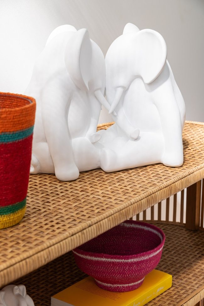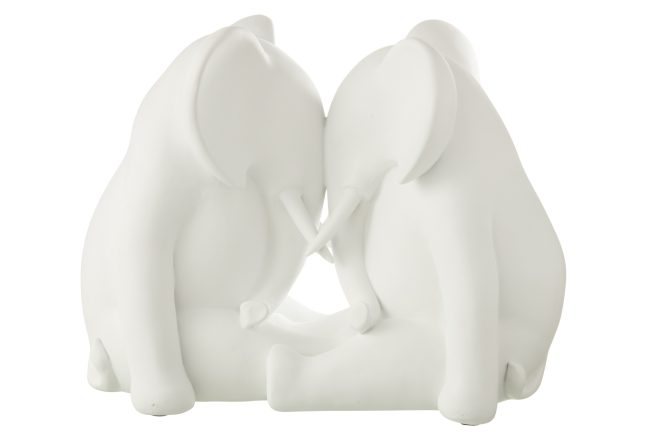 Wat een mooi en stijlvol idee! Een decoratief beeld van J-Line met zittende olifanten face-to-face kan een elegante en rustgevende uitstraling geven aan je interieur. Het witte kleurgebruik zorgt voor een frisse en moderne look, terwijl de olifanten een symboliek van kracht en verbondenheid uitdrukken.