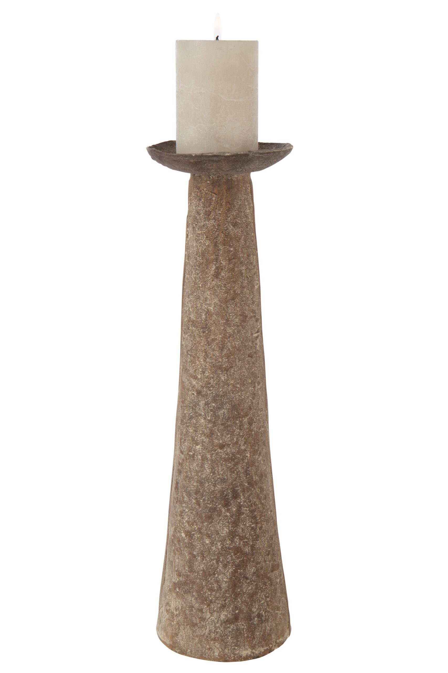 Deze elegante bruine kaarshouder in aluminium straalt klasse en warmte uit. Dankzij het slanke ontwerp en de stijlvolle afwerking past hij perfect in zowel een modern als een klassiek interieur.