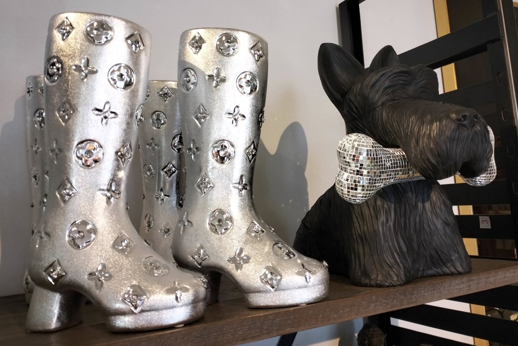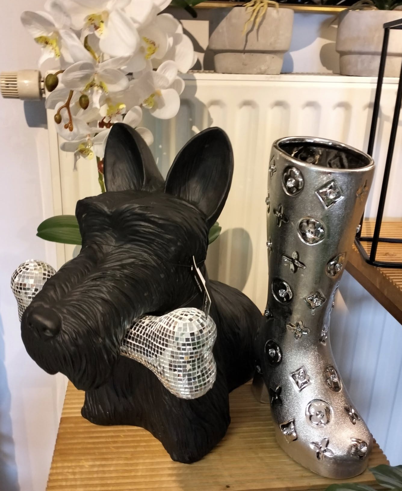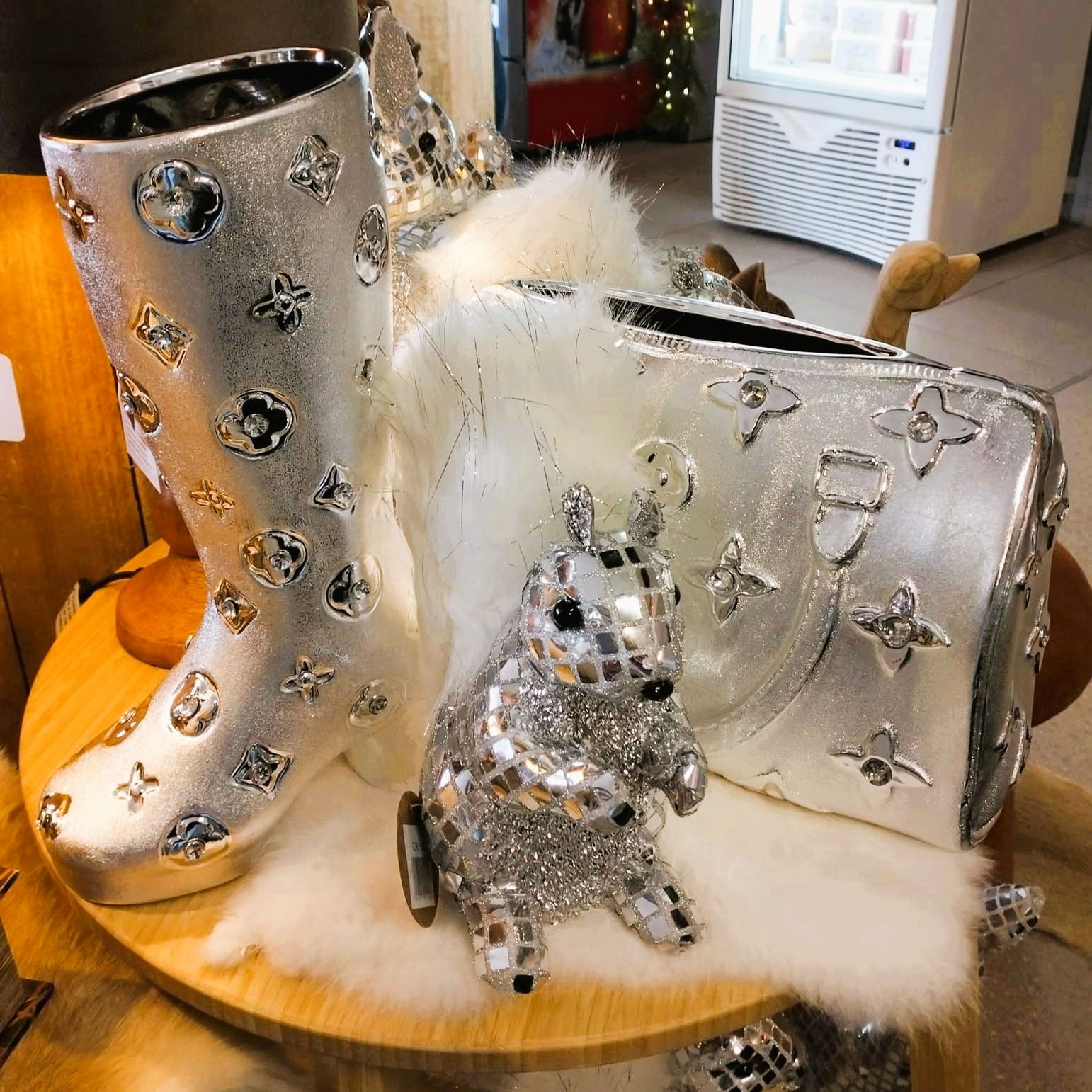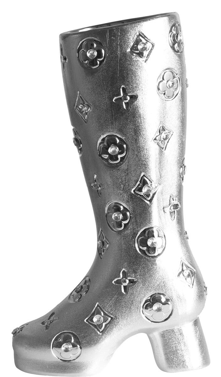 Deze unieke vaas in de vorm van een laars is een echte blikvanger! Met zijn glanzende zilverkleurige afwerking en speelse vorm voegt hij een vleugje luxe én originaliteit toe aan elk interieur. Ideaal om te vullen met kunstbloemen of decoratieve takken.