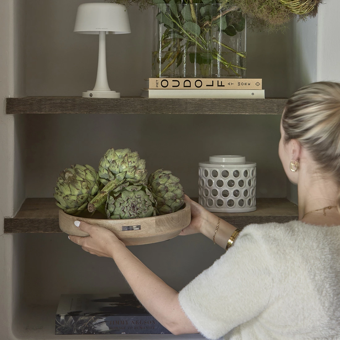 Perfect voor dagelijks gebruik: presenteer vers fruit, serveer brood of gebruik de schaal als decoratief element in je keuken of eetkamer. Dankzij het tijdloze en natuurlijke ontwerp past deze schaal moeiteloos binnen elke interieurstijl – van landelijk tot modern.