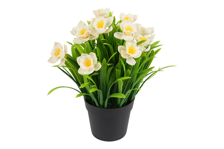 Deze kunstbloem in pot met witte narcissen van Countryfield brengt een fris en lenteachtig accent in huis. De bloemen hebben een subtiel geel hart, terwijl de fijne nerven in het blad en de speelse bloei zorgen voor een realistische en vrolijke uitstraling.