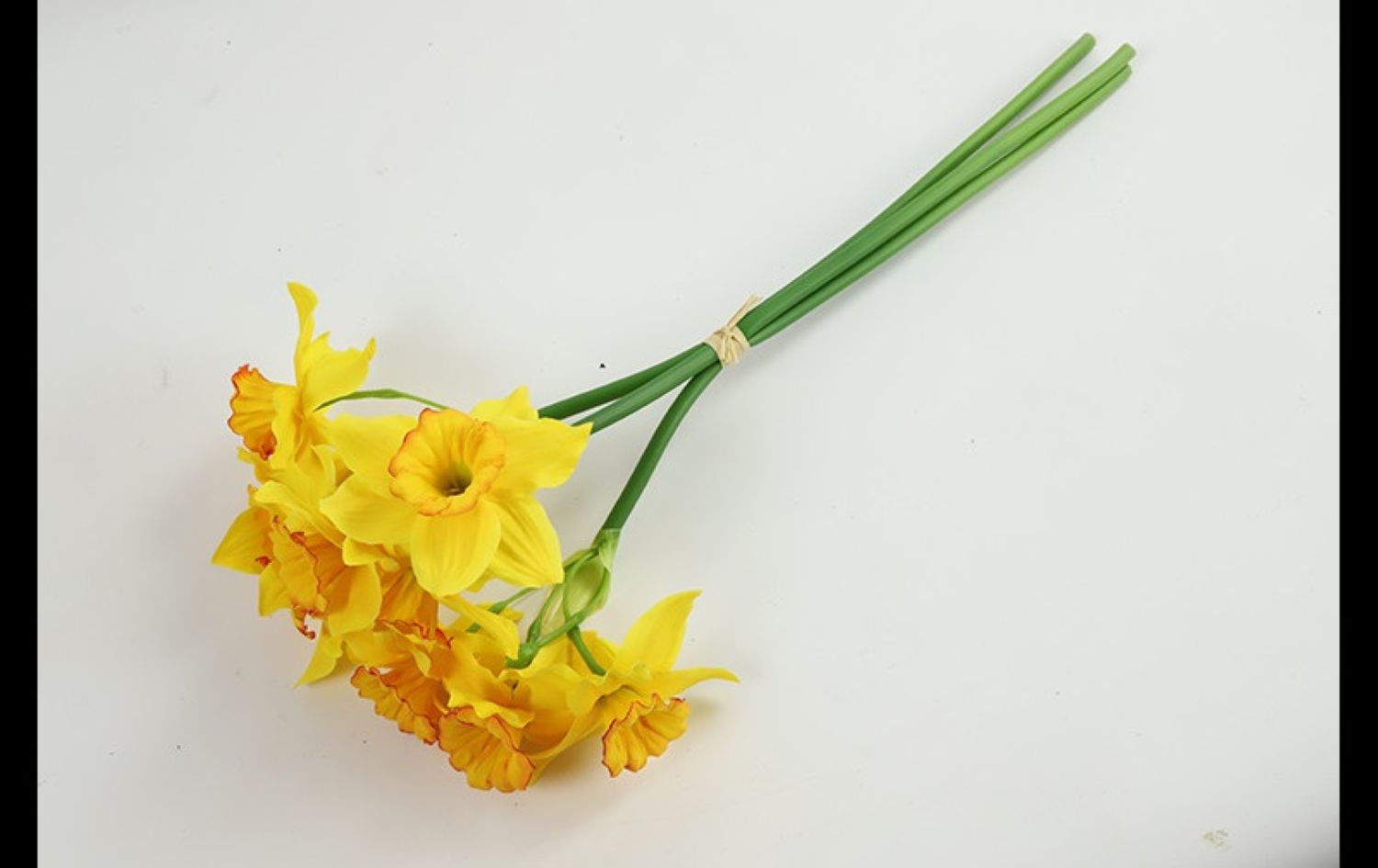 Deze kunstbundel Narcissus in oranje van Countryfield brengt een frisse en vrolijke voorjaarsuitstraling in je interieur. De narcis heeft een zeer realistische look en is nauwelijks van echt te onderscheiden. Dankzij het gebruik van hoogwaardig kunstzijde voelt de bloem zacht en natuurlijk aan.