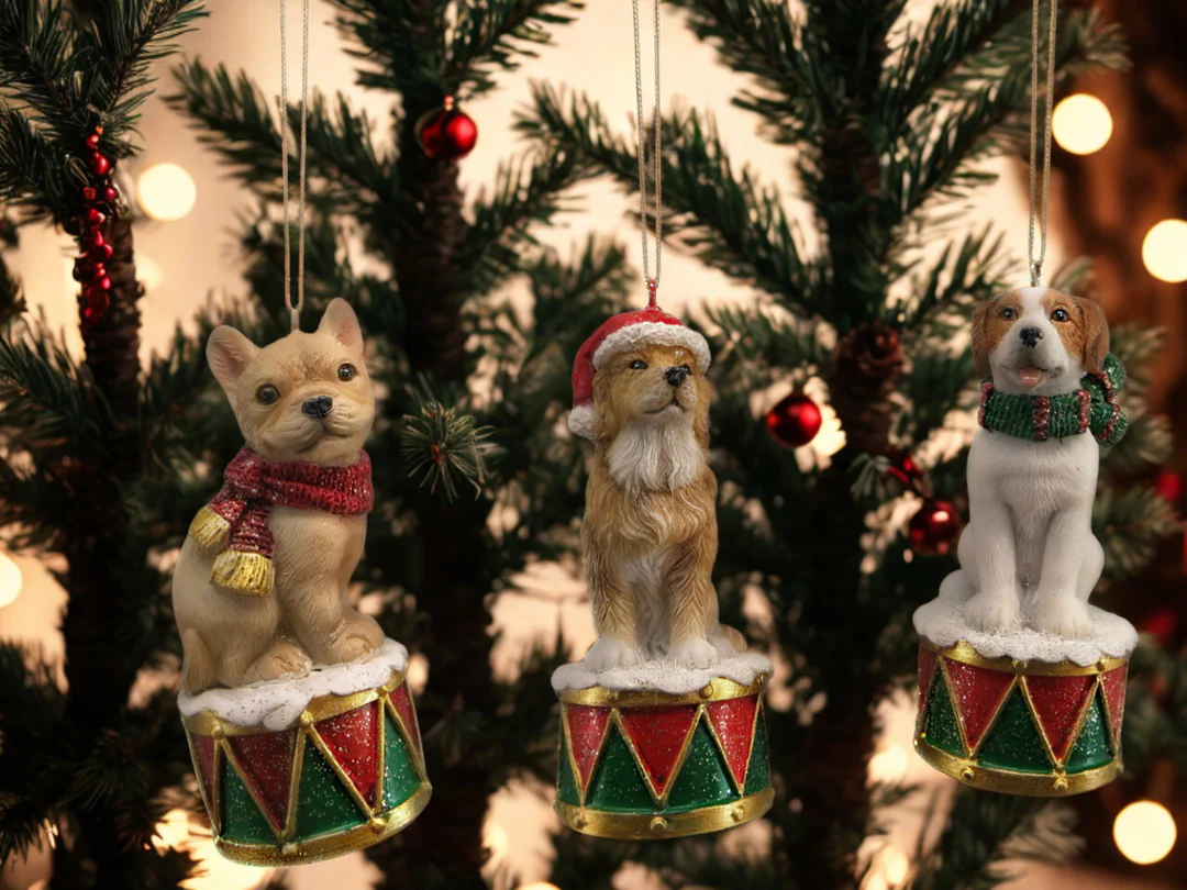 Schattige kersthangertjes van La Galleria, uitgevoerd in drie verschillende hondjes.