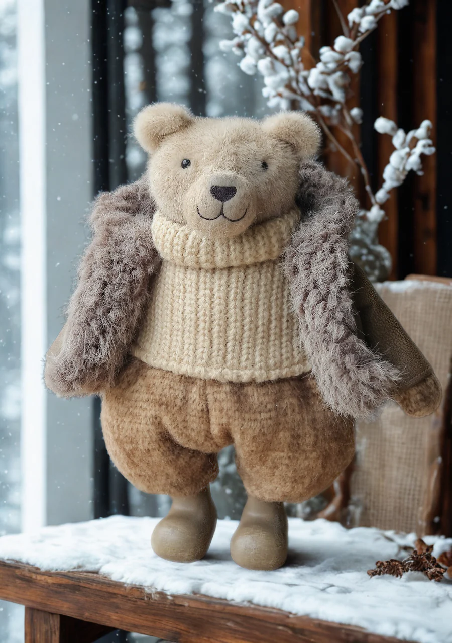 La Galleria – Staande Beer met Beige Coltrui – H 38 cm