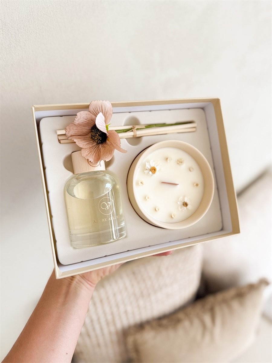Elke diffuser wordt afgewerkt met een luxe zijden bloem.
