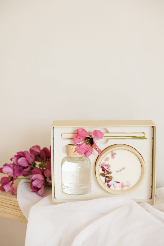 Elke diffuser wordt afgewerkt met een luxe zijden bloem.