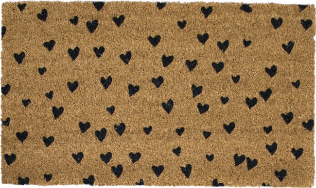 Deze vrolijke deurmat van 75cm is gemaakt van duurzaam kokos en versierd met schattige hartjes over de gehele mat. Ideaal om vuil en vocht buiten de deur te houden terwijl je entree een feestelijke en welkom gekomen uitstraling krijgt. De stevige kokosvezels zorgen voor effectieve vuilopname. Een perfecte toevoeging aan je huis voor een charmant en praktisch accent.