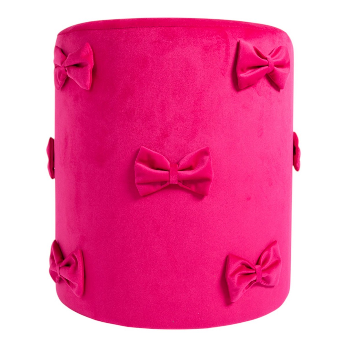 Voeg een vleugje luxe en speelsheid toe aan je interieur met deze elegante fluwelen poef van Mars & More. De rijke fuchsia kleur en strikvorm maken er een echte blikvanger van, terwijl hij ook praktisch inzetbaar is als extra zitplaats of voetenbankje.