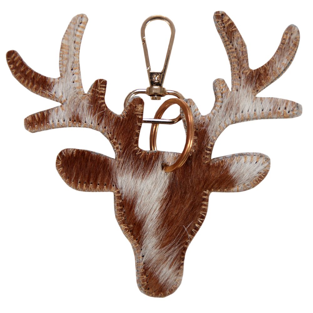 Deze stijlvolle sleutelhanger van Mars & More is uitgevoerd in natuurlijke koehuid in bruin/wit en voorzien van een elegant gouden detail. Het hertmotief geeft de hanger een charmante en unieke uitstraling, waardoor hij niet alleen praktisch is voor het bundelen van sleutels, maar ook als decoratief accessoire kan dienen. Dankzij het medium formaat ligt de sleutelhanger prettig in de hand en is hij een perfect mix van functionaliteit en stijlvolle afwerking.
