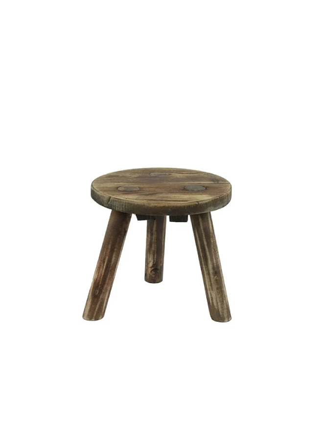 Het bruine houten krukje van Countryfield is ideaal om te gebruiken als bijzettafel of plantenkruk in de woonkamer.