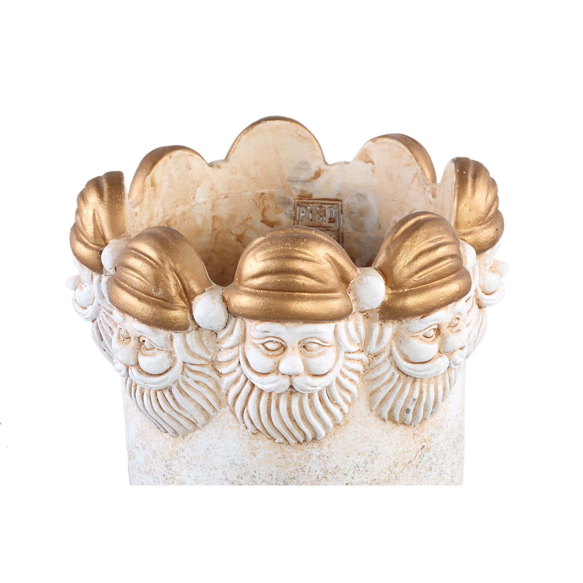 De PTMD Santi cementpot in goud/beige is een feestelijke en veelzijdige toevoeging aan je interieur of tuin. De rand met kerstmanhoofden geeft deze pot een speels en stijlvol karakter, ideaal om tijdens de feestdagen extra warmte te brengen. Perfect om een theelicht, een kerstroos of andere planten in te plaatsen.