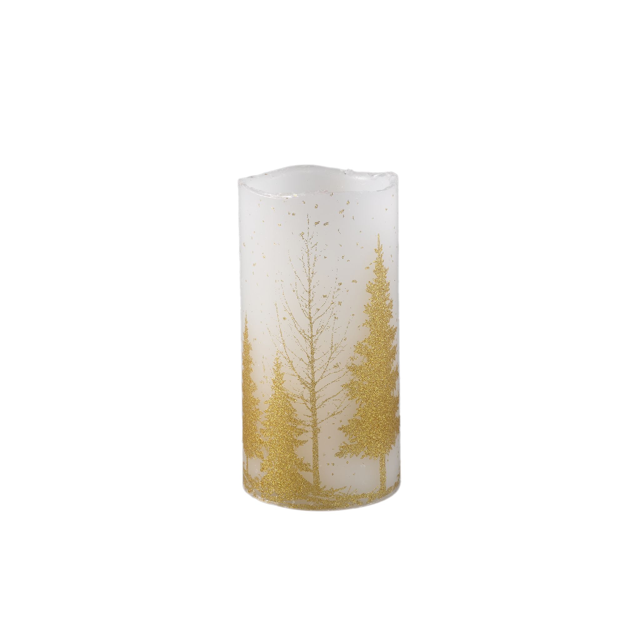 Voeg een vleugje luxe en warmte toe aan je interieur met deze prachtige LED-kaars van PTMD. De kaars is wit met een elegante gouden print van bomen — ideaal voor de feestdagen, maar ook stijlvol buiten het kerstseizoen.