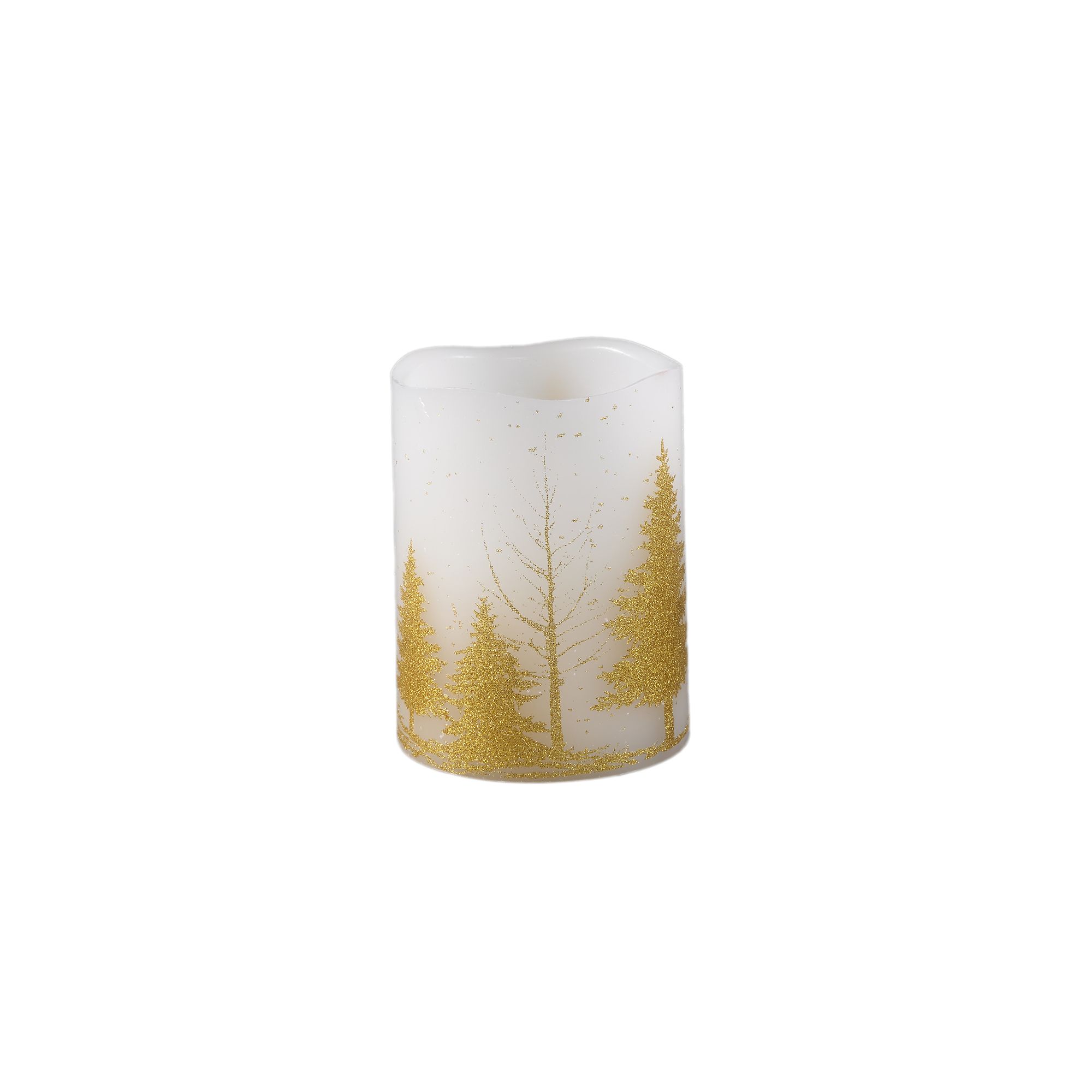 PTMD – LED kaars Met KERSTBOOMPrint – Goud – s – H10 x D7,5 cm