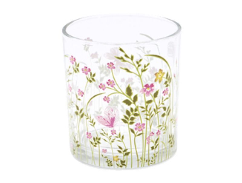Deze sfeervolle glazen theelichthouder met een roze bloemenmotief in het gras brengt meteen een vleugje natuur en gezelligheid in huis. Perfect om je interieur subtiel op te fleuren, zowel overdag als ’s avonds.