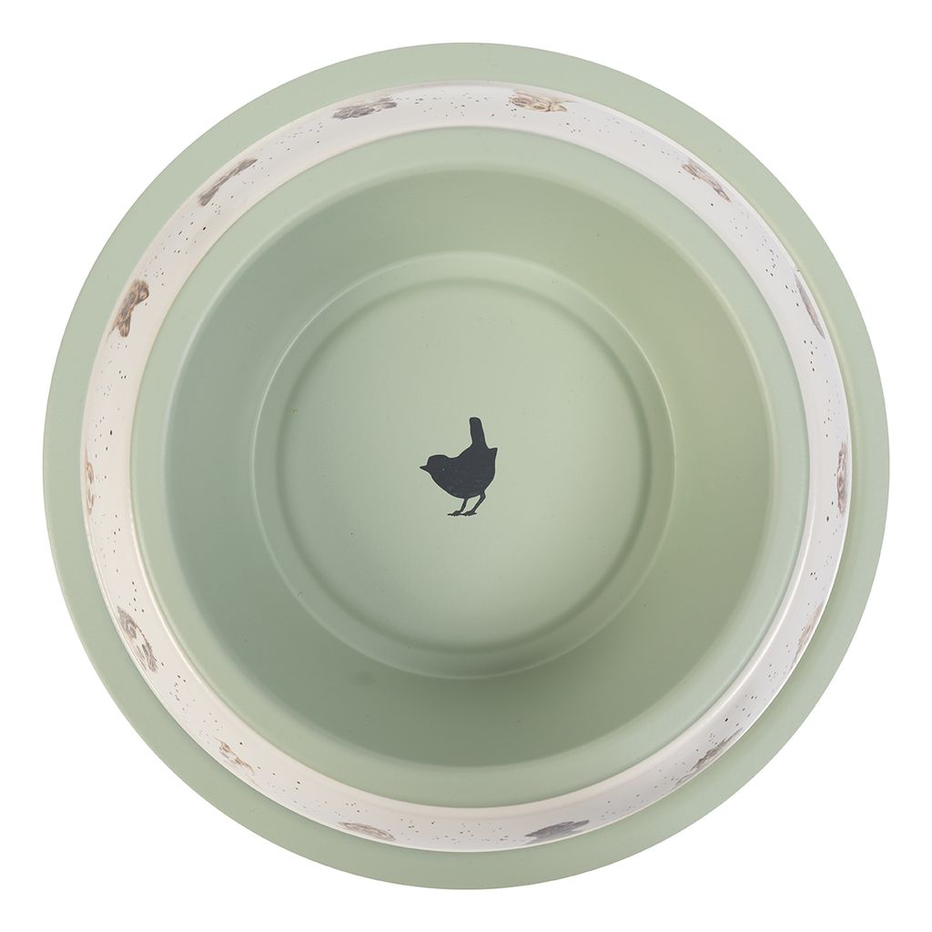 Mooie en stevige hondenvoer- of drinkbak van Wrendale Designs, voorzien van speelse hondenillustraties rondom de buitenzijde. De bak heeft een uitneembare roestvrijstalen binnenkom die vaatwasserbestendig is voor eenvoudig schoonmaken. De rubberen antisliprand aan de onderzijde zorgt ervoor dat de bak stevig op zijn plaats blijft.