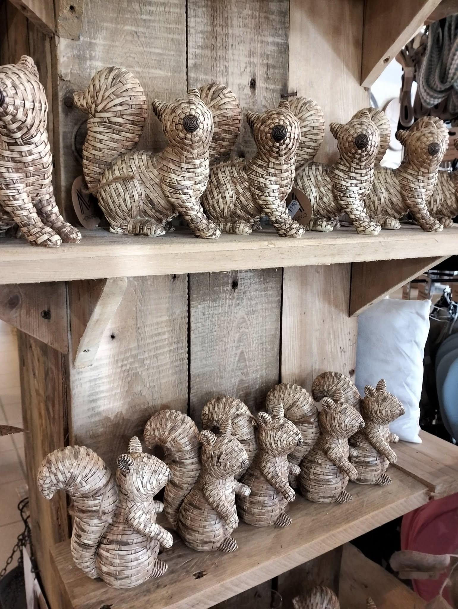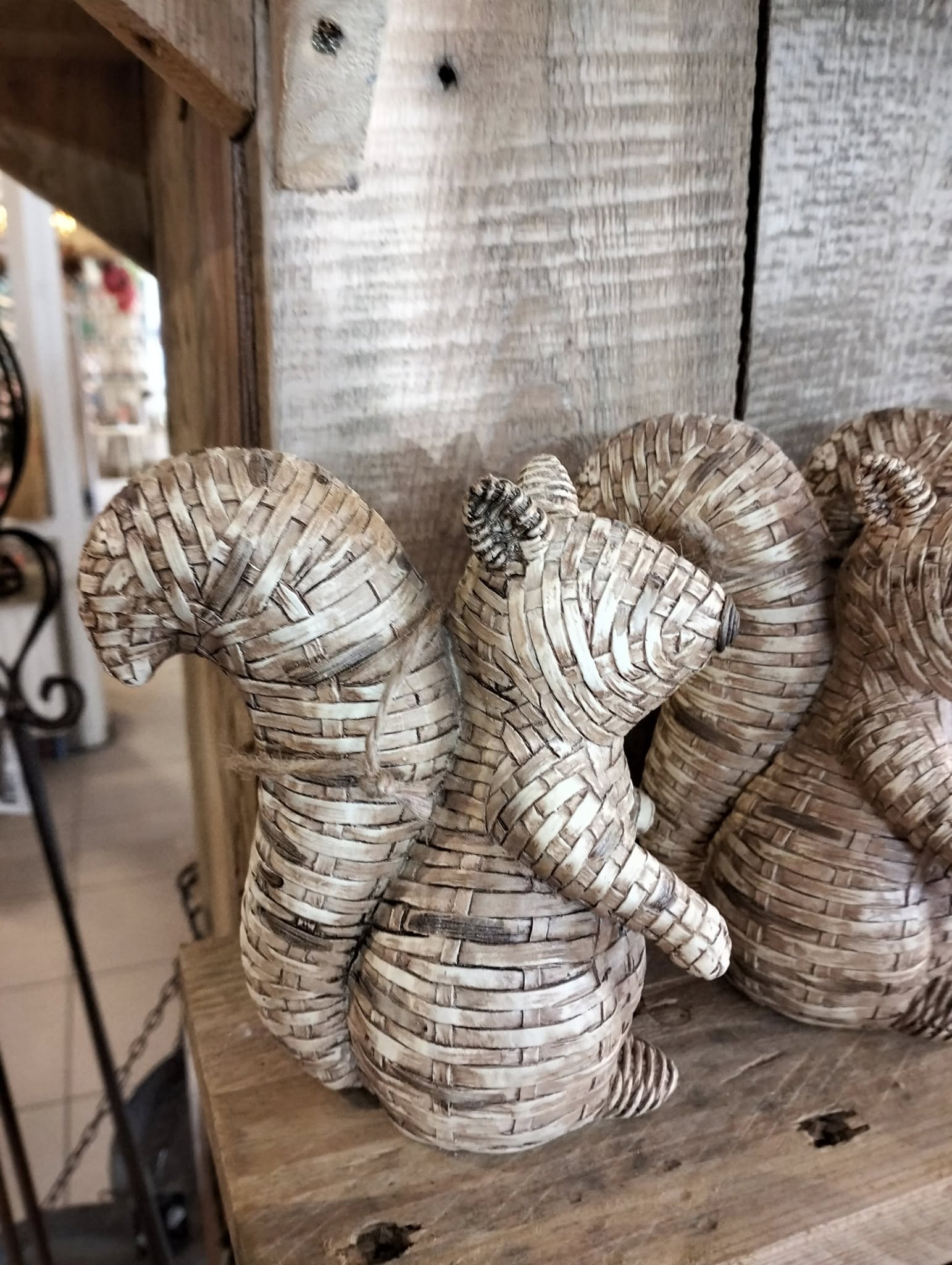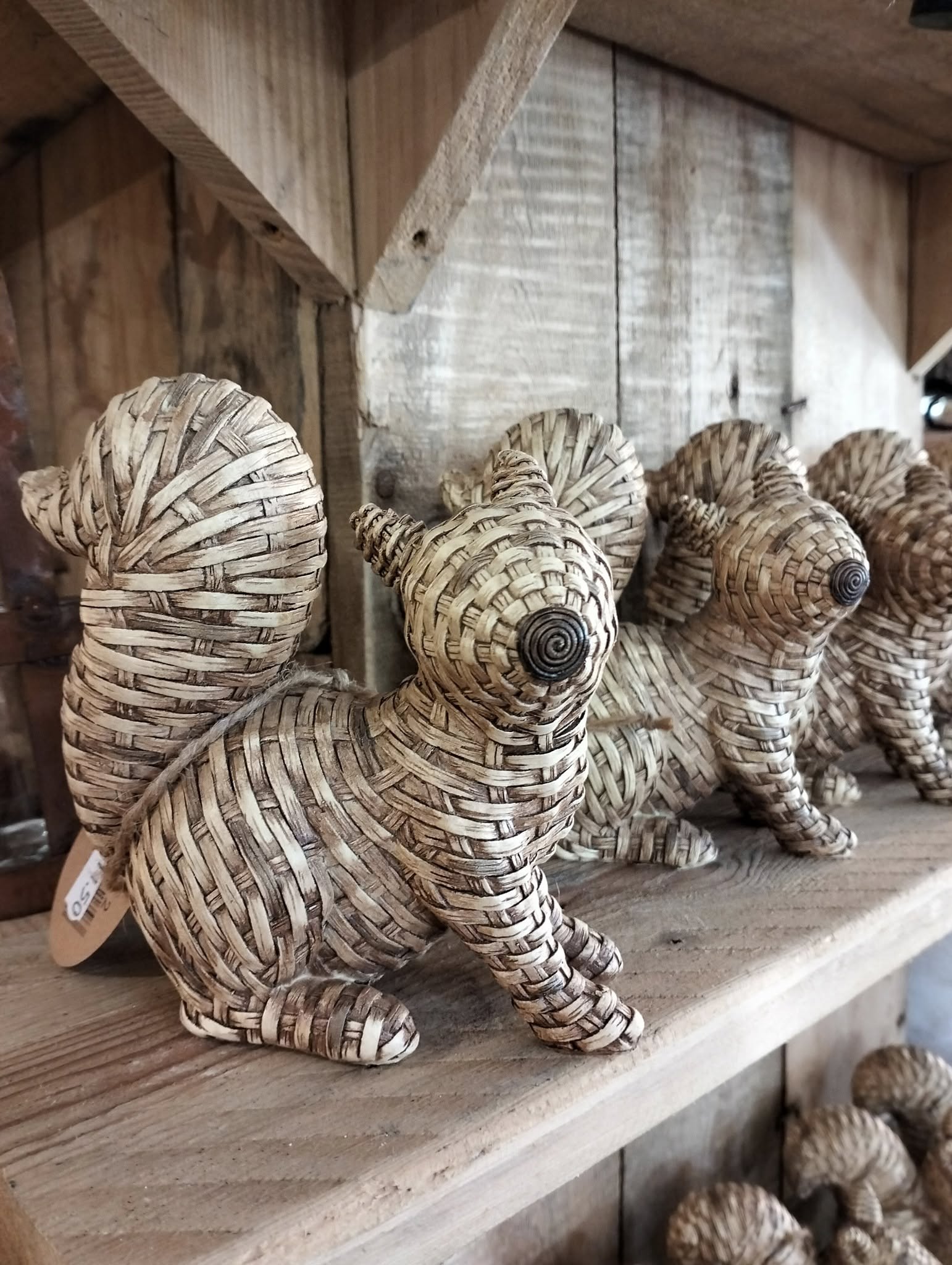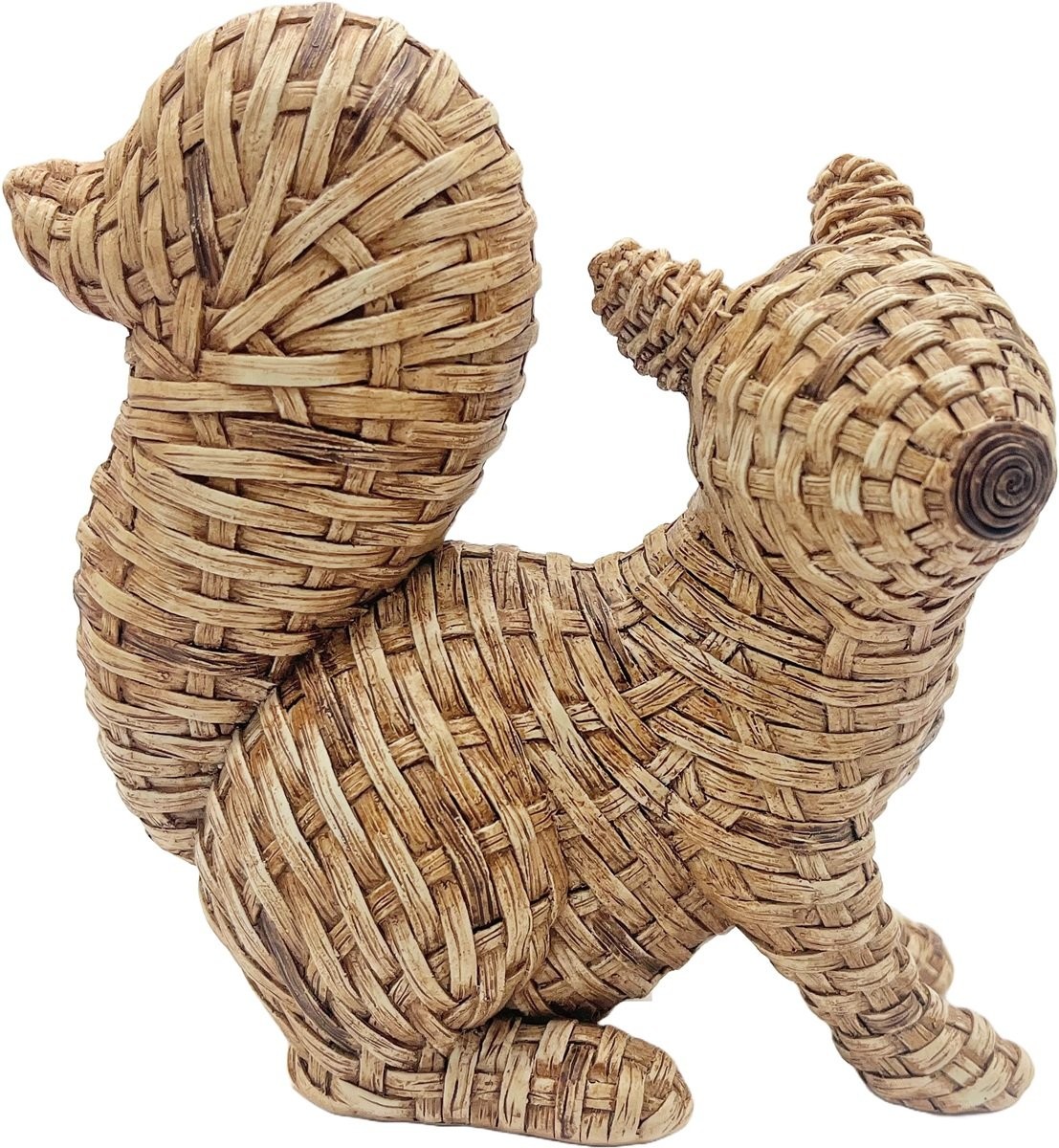 Breng een vleugje natuurlijke charme in huis met deze decoratieve eekhoorn van kunsthars met het motief van gevlochten riet. Met zijn warme, naturel uitstraling en fijne details is dit een perfect accessoire voor de herfst of als rustiek accent in je interieur.